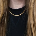 Simple minimal stylish flat snake chain necklace in 18k tarnish proof gold plate.