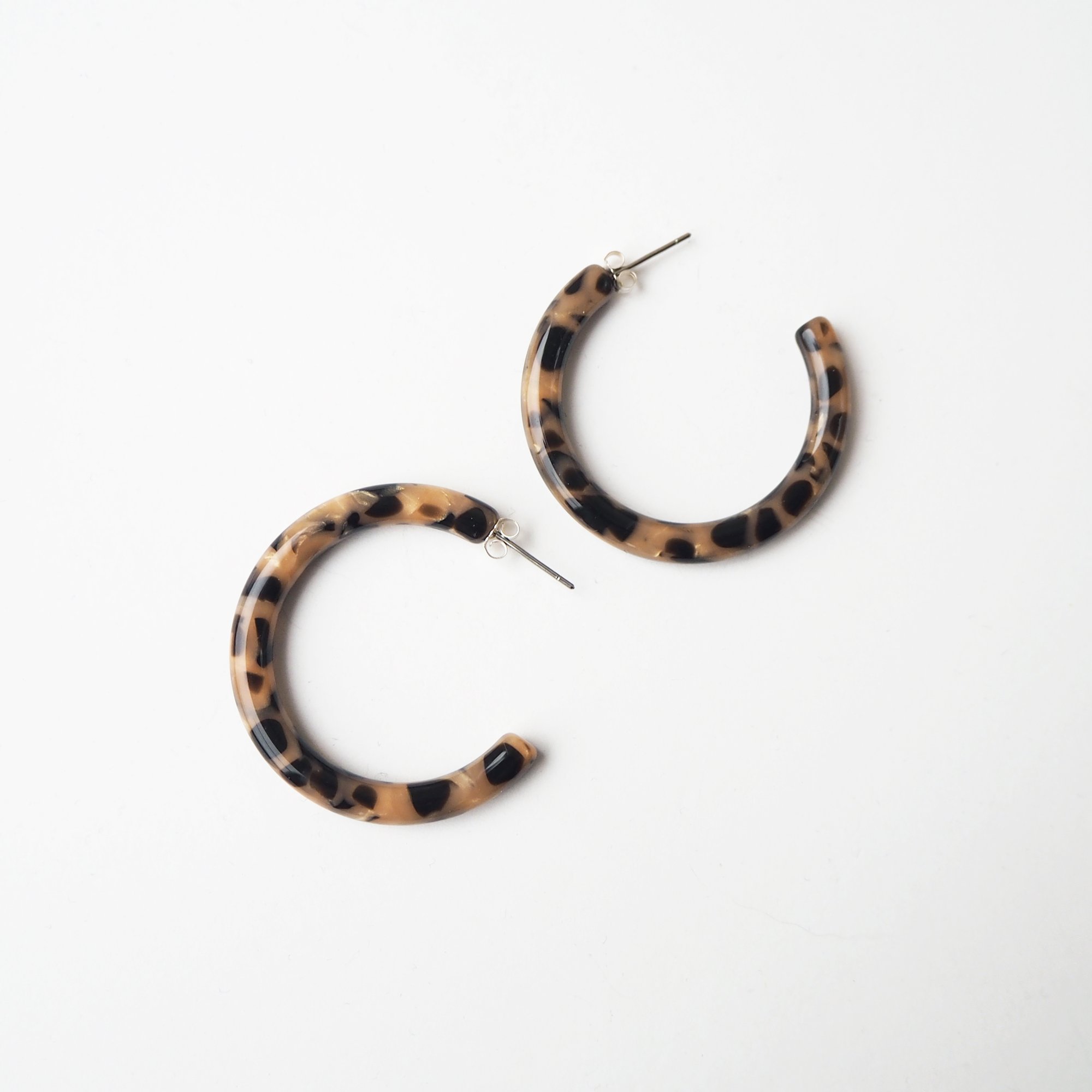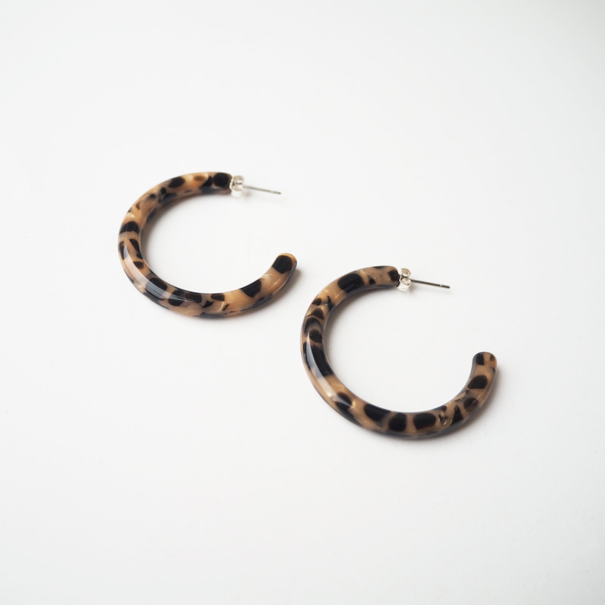 These beautiful slim hoop earrings are made from pretty caramel mix acetate. The perfect hoop earring for a pop of pattern.